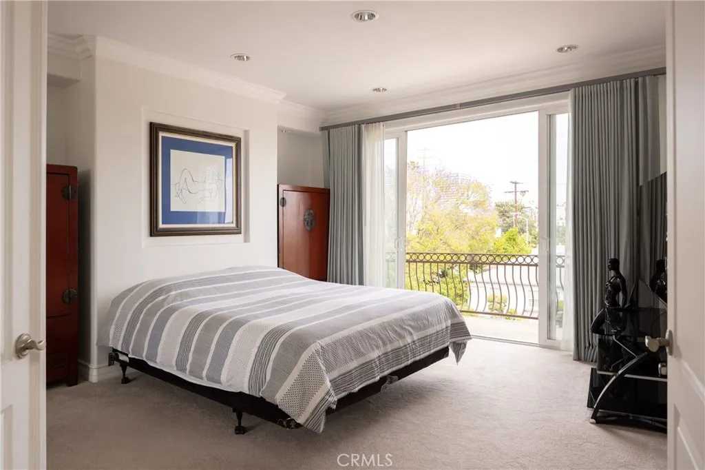 A dramatic two-story entry with a custom wrought iron staircase and rich hardwood floors makes an immediate impression. The formal living room is filled with natural light, featuring crown molding and custom drapery that flows into the dining room through an arched opening. A limestone fireplace anchors the sitting area, while the kitchen is outfitted with cherry cabinetry, honed granite, Viking appliances, and a bright island eating area with garden views. Upstairs, the primary suite offers a private balcony and a spa bath with double vanity, soaking tub, and separate shower. Three additional bedrooms are well-sized with updated baths, and laundry is conveniently located on the upper level. A private side yard, manicured landscaping, direct-access garage, and no HOA round out the package. Minutes from UCLA, Century City, Santa Monica, and the Sawtelle dining