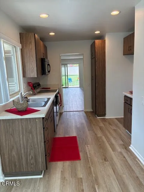A very attractive Del Mar model with close proximity to all the activities and facilities at Leisure Village Recreation Center,Ventura County's most sought 55+ community. It is also a quick walk to bank, restaurant and shopping near the main gate. This home has been freshly painted including garage, new wood like plank flooring throughout and dual pane windows, generous sized primary suite with mirrored wardrobe, recessed lighting, ceiling light/fan. In addition there is a very private patio with no homes behind, looking on to an expansive greenbelt. Leisure Village offers 18 hole - par 9 golf course, tennis, paddle ball, billiards room, wood ceramics and lapidary shops, library , meeting rooms for various functions and more. At the time of listing this was the lowest priced Del Mar model on the market.