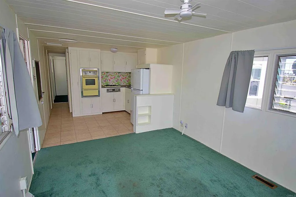 Very affordable 1bed +small california room 1bath 400 sqft well maintained. Situated in a very quiet, clean and well maintained SENIOR community, this home has a carport for 1 car, a patio and a shed. You can make it work for two cars reducing the patio space. Situated right across the Trolley station, next to i-5 and the Marina in Chula Vista, Commercial areas, the community has laundry facilities, clubhouse and swimming pool. Space rent is $1250/month and has rent control.