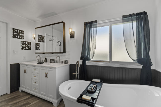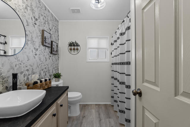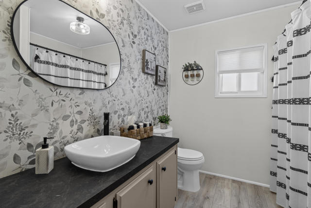 Welcome to this stunningly renovated home in Skys Haven, a vibrant 55+ community packed with amenities--plus, you own the land! Every detail of this home has been thoughtfully updated, starting with a professionally restored roof and brand-new engineered flooring. A versatile bonus room, complete with French doors and a Murphy bed, offers the perfect space for guests or a home office. All windows have been replaced with energy-efficient dual-pane upgrades, while the fully remodeled kitchen is a true showstopper--featuring luxury vinyl flooring, quartz countertops, recessed lighting, a ceramic tile backsplash, refreshed cabinetry with modern hardware, and even a dedicated coffee bar. Stylish new lighting fixtures elevate the dining room and hallway, and the primary bathroom has been transformed into a spa-like retreat with new laminate flooring, a sleek standalone shower, self-supported soaking tub, dual-sink marble vanity, and a toilet with bidet. The guest bathroom has been beautifully updated to match. Step outside to a deck upgraded with porcelain tile and an electric heating system--perfect for enjoying outdoor living in any season. The air conditioning unit is just a few years old and runs like new, keeping things cool and comfortable. The home now sits on a permanent foundation, making it eligible for all loan types. Don't miss your chance to own this remarkable property--schedule a showing today!