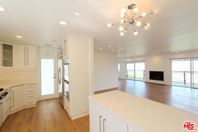 EXPLOSIVE VIEWS AS FAR AS THE EYE CAN SEE! CITY LIGHTS, THE HOLLYWOOD SIGN, AND MORE! Just moments from the top entrance to Runyon Canyon Park, this is a dream setting for hikers and anyone who craves that perfect blend of nature and city energy.Inside, the open entertainer's floor boasts newly updated flooring and lighting to set the tone, while smart home features including an energy saving Nest system, keypad entry, wired sound, home theatre capability, and Apple TV integration create a seamless, modern lifestyle. A fireplace adds warmth and ambiance, and dramatic walls of glass frame the sweeping city and mountain views, turning every sunset into a private show.The kitchen is sleek and well appointed with stainless steel appliances including a Viking stove and oven, and offering direct access to the refinished two car garage with washer and dryer for effortless convenience.The primary suite features a walk-in closet and a beautifully updated bath with a steam shower designed to unwind and indulge. Sliding doors open to a view deck where mornings feel serene and evenings feel exciting. The spacious guest bedroom is just opposite another stylishly updated bath and flows out to a newly refinished patio and BBQ. Set in a prime Hollywood Hills location near transportation, hiking, dining, shopping, and the best of the city's entertainment, this home delivers drama, sophistication, and undeniable allure.