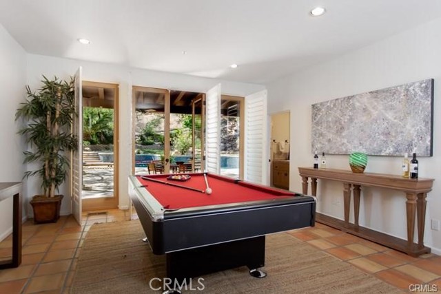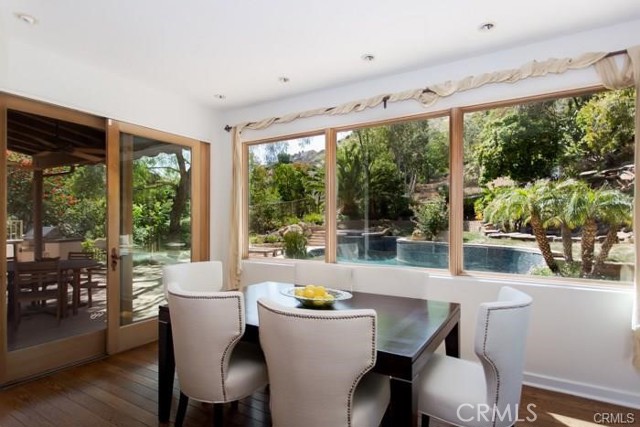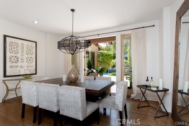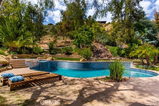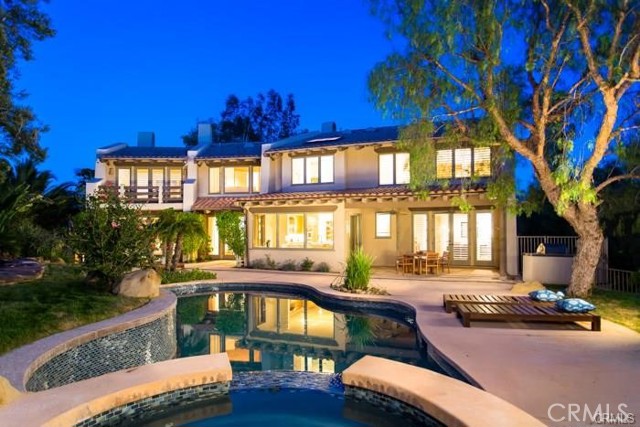 Located in the prestigious guard gated community of Bell Canyon, this custom Spanish Hacienda inspired estate is loaded with style and charm. The stunning architecture, quality construction, rare parking for at least 10+ cars, and very private natural setting all combine to create the perfect entertainer's retreat. The open and flowing floor plan features an impressive entry with sweeping staircase and two story vaulted ceilings. The inviting living room features vaulted wood beamed ceilings, a stunning centerpiece fireplace and rich hardwood flooring. The grand dining room is scaled perfect for huge gatherings or an intimate candlelit dinner with views onto the gardens. The comfortable Family room is the perfect place to gather complete with hardwood floors and custom built ins. Take comfort in the private study or enjoy a game of pool in the billiards room. The granite center island kitchen is every gourmet chefs envy with a spacious breakfast nook with views onto the beautiful manicured rear grounds. The romantic master bedroom suite offers vaulted tongue and groove ceilings, a huge sitting area and custom fireplace. The 2 acre grounds offer spacious patios, lush landscape, a freeform pool and spa all with plenty of space for horses, play fields or what ever you wish.