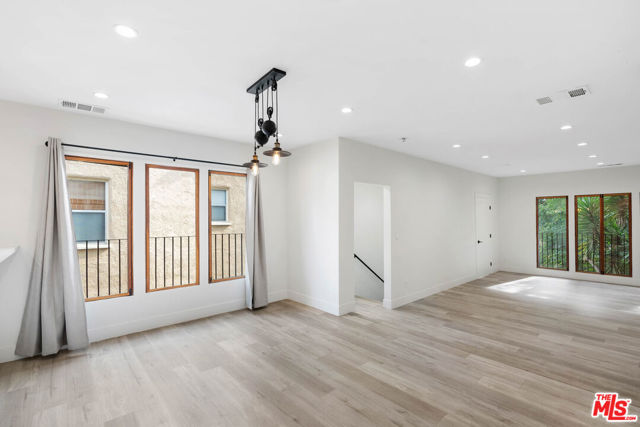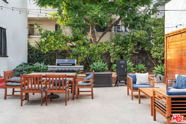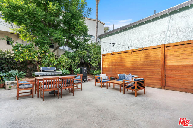 Beautifully updated upper unit in a classic Spanish-style duplex, ideally located in one of LA's most vibrant neighborhoods. The spacious open layout flows effortlessly from the modern kitchen complete with custom cabinetry, quartz countertops, and stainless steel appliances into a generous dining area and bright living room featuring a gas fireplace, stone mantel, and wood-trimmed windows. A bonus room just off the kitchen offers the perfect space for a home office, nursery, or guest retreat.Enjoy indoor-outdoor living with a private balcony and a shared backyard patio outfitted with a grill, dining table, and lounge seating under string lights ideal for relaxing or entertaining. Additional conveniences include in-unit laundry, smart thermostat, Ring doorbell, high-speed internet wiring, and both front and rear entrances. With only one neighbor in the building, this unit offers a wonderful blend of privacy and charm. Just moments from The Grove, LACMA, the lively Fairfax District, and the trendsetting boutiques and eateries of Melrose and La Brea. FIRST MONTH FREE!!