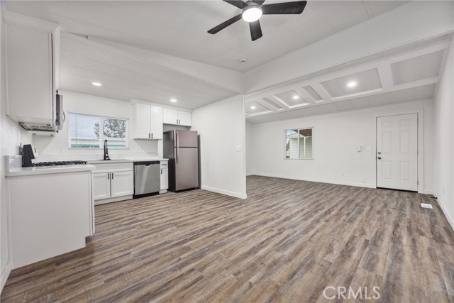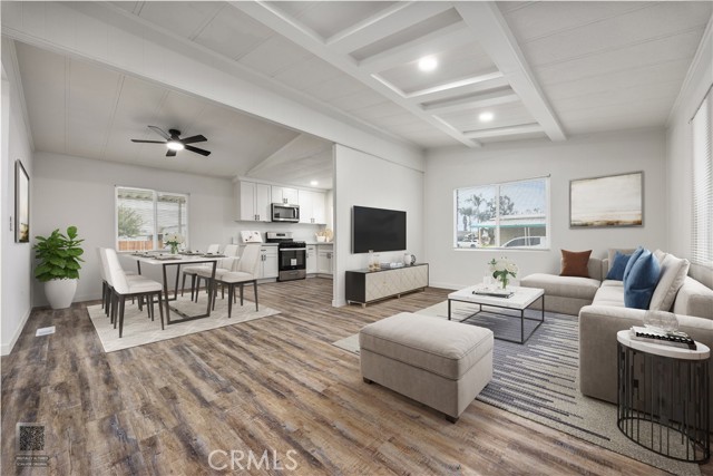 Discover comfort and style in this beautifully renovated 1,056 sq ft, 2-bedroom, 1-bathroom manufactured home, ideally situated on a desirable corner lot in the peaceful community of Riverdale Village. Thoughtfully updated and move-in ready, this home features a refreshed bathroom, stainless steel appliances, stunning quartz countertops, modern cabinetry with elegant black accents and an efficient HVAC system. Fresh interior paint, new carpet, and wood-style flooring add warmth and sophistication throughout, all while being on a generous sized lot. Riverdale Village offers an exceptional lifestyle with amenities including a shimmering pool, fitness center, game room, soccer and basketball courts, and a clubhouse complete with a full kitchen and recreation lounge. A playground and dog station ensure enjoyment for all ages. This is a rare opportunity to own a stylish, fresh turn-key home in a vibrant and welcoming neighborhood.