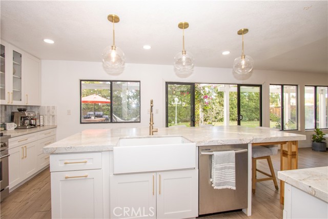 Welcome home to this Beautiful and Charming home in the city of Corona CA. This home is situated in one of the most desirable areas of corona amongst the highest sought after schools in the school district. This area of corona is nestled at the foothills of the Cleveland national forest. While living at this home you will have the benefit of stunning trails that are so beautiful in the Fall and Spring when the leaves change colors. Another perk is you would have access to skyline wilderness hiking trails along with many other local known wilderness walking trails. Aside from the surrounding beauty you will have the benefit of nearby shops, entertainment and restaurants. This home features Views of the Sparkly city lights on the entire north side of the house second level. When you walk through the front door you are greeted with beautiful vaulted 18 foot ceilings that provides stunning bright light throughout the entire day. The entire downstairs part of the home has been fully remodeled with chandeliers, Porcelain wood like tile flooring, upgraded baseboard. The kitchen of this home has been fully remodeled and offers a 10 FOOT Custom Island made 10ft with Stone Quartzite ITAIAN slab, a 6 Burner High end CHEF STOVE AND OVEN, and a bar area perfect when entertaining guests. The fireplace area is very charming and upgraded perfect for winter months. This home offers a Downstairs bedroom with a Remodeled Downstairs Marble bathroom. This home offers a very Large 3 Car garage and separate individual laundry room inside the home. The backyard of this home offers a garden with over 25 Fruit bearing trees. The primary bedroom has its own bathroom with walk in closet. One of the bedrooms upstairs is almost as large as the primary bedroom. DO NOT WAIT ON THIS HOME!!!! It's a stunning CUSTOM HOME in a beautiful neighborhood.