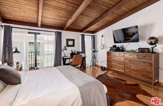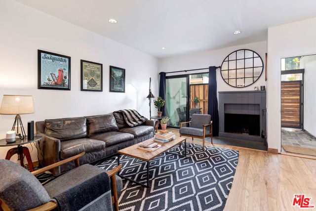 Recently renovated bright townhome with great flow in the heart of Santa Monica! Enter the oversized private front patio to the open living room with wood burning fireplace & sliding door to patio. Living room leads to inviting dining room with custom built-in bar & wine fridge, ideal for entertaining. Updated square kitchen with newer top of the line appliances (including "smart" refrigerator), pantry & ample cabinetry. Breakfast bar off kitchen opens to spacious Den / Family Room / Office with powder room & sliding door to back patio with BBQ. Upstairs has beautiful rustic wood ceilings, skylight & 2 separate, non-adjoining en-suites, both with high pitched ceilings. Luxurious primary suite has large custom closet & balcony. Primary bathroom has double sinks, marble counters & floors & skylight. This home has gated side-by-side parking with type 2 EV charger, central AC with Nest system, beautiful hardwood flooring throughout, in-unit side-by-side laundry, 3 outdoor areas, great in-unit storage, ample street parking & new double pane windows/sliders throughout, creating wonderful natural light! Exceptional smaller building was recently updated, including new paint, new doors & new front balcony enclosures. Excellent "Walkability" with extremely close proximity to Whole Foods, Trader Joe's, restaurants, bars, Douglas Park & more! Outstanding public schools: zoned to Franklin Elementary School & Lincoln Middle School. Easy access: 1 mile to 10 freeway, 1 mile to Metro stop, & 2 miles from beach/PCH.