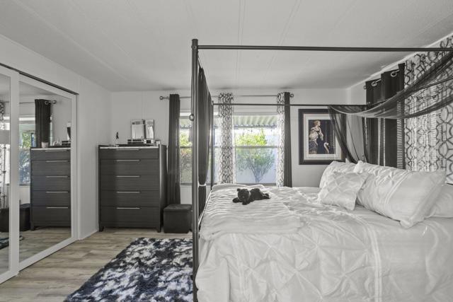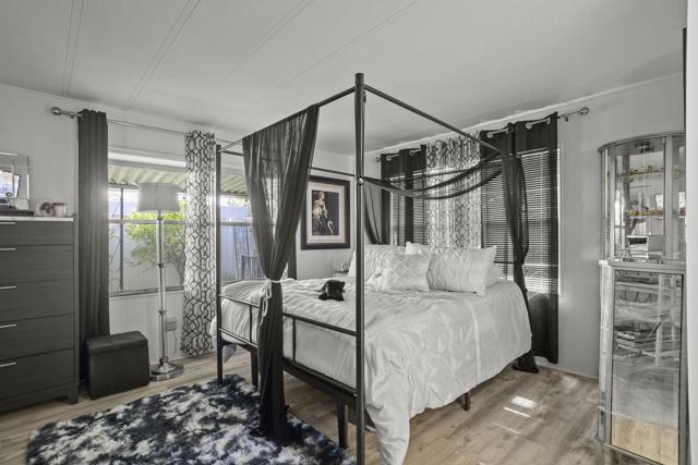 ''You Own the Land,'' El Dorado Palms in Palm Springs.' Location'' is near Traders Joes, Airport, Shops Casino and Dining. Home is located on street where second pool and tennis courts are.Features include a great garden patio oasis with pet friendly fencing. Enjoy the only affordable land owned Mobile home park in Palm Springs. Low HOA.LVP flooring throughout,(Pella)Duel Pane Windows, A/C, Quartz Counter tops, updated bathrooms and interior Paint. Price and Condition of this home make it a deal!