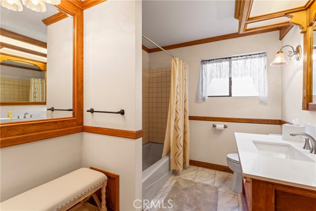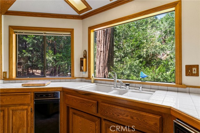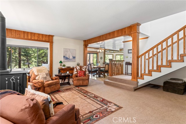 Discover the timeless charm of this beautiful lake-close home, situated on a street-to-street lot in the highly sought-after San Moritz area of Lake Gregory. Lot is very large gentle and usable. This retreat features a 3-car garage with extra workshop and storage space, a picturesque treed lot, and spacious rooms throughout. Popular reverse-floorplan includes two large bedrooms (one with a cozy window seat) and a lovely bathroom, along with an easily accessible garage. Downstairs, you'll find a stunning open floorplan filled with natural light, a spacious kitchen with an oversized chef's pantry/laundry room, dining area, and an expansive living room complete with a wood-burning stove. Step outside to a serene deck nestled among the trees, or head downstairs to the massive, ready-to-finish basement and a path leading to the street below and the lake. Essential updates include air conditioning, HVAC, roof, back-up generator, and more. The kitchen boasts an abundance of oak cabinets, so pristine they appear brand new. The primary bedroom, just off the living room, offers a private retreat with dual pocket doors, a soaking tub, and a spacious, secluded atmosphere. This home is truly a gem! 12 month lease. No smoking inside of the home.