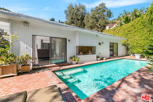 Live as though you are staying at the iconic Chateau Marmont Hotel. Private European-inspired single-story hideaway with a heated pool and city views. Nestled above the famed Chateau Marmont Hotel, minutes from the Sunset Strip with A-list celebrity neighbors on a quiet non-through street at the top of Marmont Avenue. Enter through a hand-carved wooden gate with code access to an enchanting koi pond and sounds of soothing rippling water. Mid-century architecture with walls of glass invite year round sunlight and a romantic luminous warmth. Single-level open floor plan for easy living. Well appointed primary bedroom adjacent a private, heated lap pool with city views (from bed), large walk-in closet, black-out drapes, double vanity, shower, jetted soaking tub and bidet. This special home checks all the boxes: gated and secure, informal and formal living rooms, open kitchen, dining room, petite wine cellar, gas burning fireplace, wet bar, powder, 3 beds en-suite, pool, multiple outdoor sitting areas, outdoor BBQ, city views, 2-car garage with EV charger, Sonos, surround sound, multiple cameras for security and other smart home technology. Simply put, this darling home offers the highest form of California living. List price reflects a 1-year furnished rental. Short term rates are as follows: 20k/mo for 3 months, 18k/mo for 6 months. Utilities are not included in list price. Call for pets. Also available unfurnished for the same rate. Property is tenant occupied until Feb 28, 2026. See agent remarks for showing instructions.