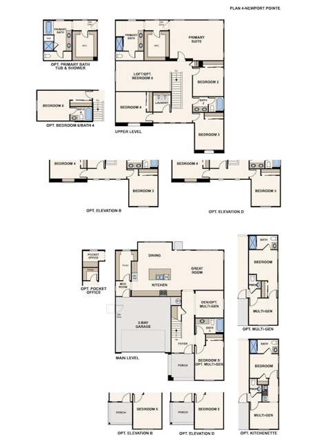 Welcome to Newport Pointe, A New Home Net ZERO - ALL ELECTRIC Community by Century Communities. This is a Two Story - East Facing home on a corner lot. Plan 4 offers 2,833 square feet of living space with a total of 5 Bedrooms, 3.5 Bathrooms, Loft, Multi-gen Suite with Kitchenette and 2 Car Bay Garage. Home includes cabinets with an Espresso finish, concealed hinges and chrome hardware. The kitchen offers Quartz counter tops with a 3x 6” tile back splash. Stainless Steel Kitchen Aid Appliances with an Electric Range. Appliances include Refrigerator, Washer and Dryer. Additional Features include – Tub at Primary Bedroom, Laundry room cabinets, Blinds, Solar – Lease and Purchase options, Net Zero Energy Package which includes Energy Efficient Water Heater & Furnace and Car Charger – 40 AMP with Receptacle. Century Home Connect, 3 ¼” Base Boards, Luxury Vinyl Plank (LVP) at first floor, bathrooms and laundry room - excludes bedrooms, Carpet in Bedrooms, Stairs and Hallway upstairs. Newport Point offers the perfect balance of small-town charm and resort-style living. Residents will enjoy a wide variety of community amenities designed to elevate everyday life and create memorable experiences.