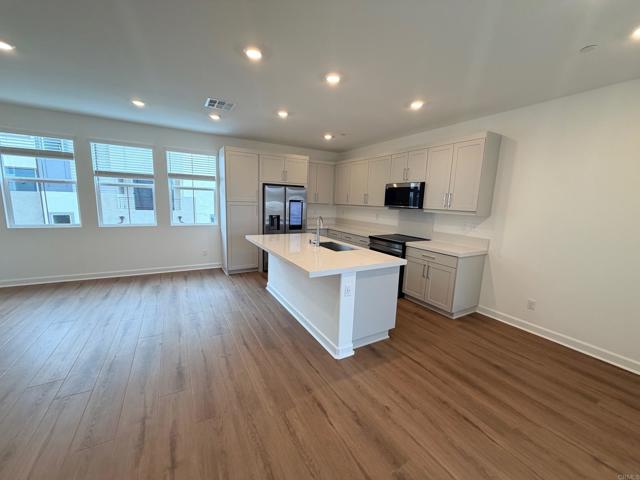 Available Now ~~ BRAND NEW / NEVER BEFORE LIVED IN THE BEST LOCATION on an end unit, with the largest privately gated entry away from the street, view of the open space, and sunsets from many rooms and a balcony that faces west. This home is on a single-loaded street, with a newly epoxied 2-car garage. 3 bedrooms with 2 full bathrooms are on the 3rd floor, and the 2nd floor is an expansive great room and bathroom. No carpet, the entire home is luxury vinyl wood flooring throughout. New appliances, including new washer and dryer units that are adjacent to the bedrooms. The home has SOLAR INCLUDED along with Battery Storage. The home has window coverings, modern shaker cabinets, electrical ready to mount flat screen TVs, and more. With a 240v plug in the garage, it is ready for your electric vehicle. The home is in the Hill District master plan of San Marcos, with easy freeway access, close to shops, restaurants, grocery stores, and 20 minutes to many coastal beaches. Your new lifestyle awaits!