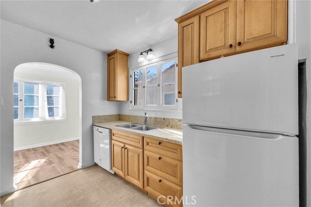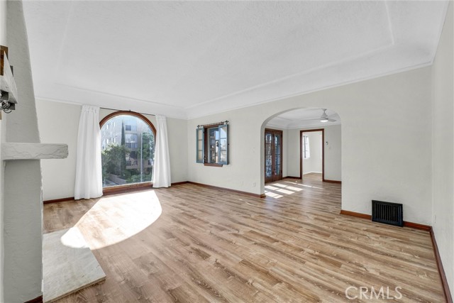 This spacious 2 bedroom, 1 bathroom upstairs unit offers approximately 1,080 square feet of timeless charm and thoughtful updates. Original hardwood floors, arched ceilings, and authentic wood doors and trim preserve the home’s architectural character, while the remodeled kitchen provides modern convenience with a dishwasher, refrigerator, and stove included.