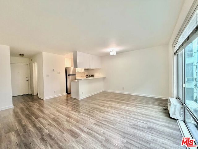 Updated first floor, studio apartment at The Wilshire Embassy in the heart of Miracle Mile. Features air conditioning and a large picture window that fills the space with natural light. The updated kitchen offers abundant upper and lower cabinet storage, a spacious counter with bar seating, radiant electric cooktop, and stainless steel refrigerator. Excellent storage with generous closets in the hallway and bathroom. Live Steps from LA's Cultural Corridor! Walk to Museums, Fitness, Dining & Daily Essentials along Wilshire Blvd, walkable to LACMA/La Brea Tar Pits, Petersen Auto Museum, Academy Museum, David Geffen, , the SAG-AFTRA Building, Equinox, 24 Hour Fitness, groceries, cafes, shops, and banks. Easy access to bus lines, with new Metro subway stations opening in 2026. Photos are of typical 1 BR floorplan but may not be of actual unit.