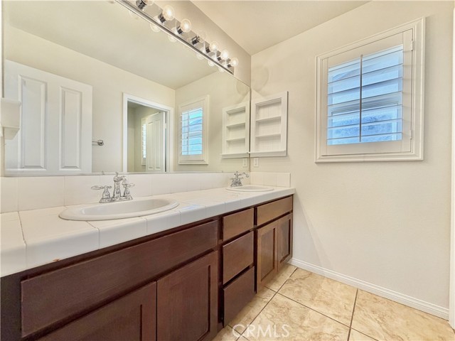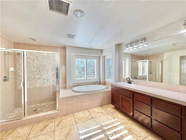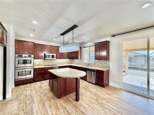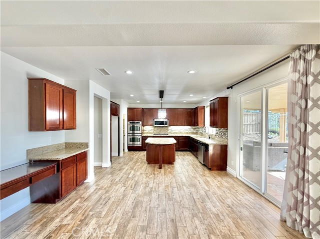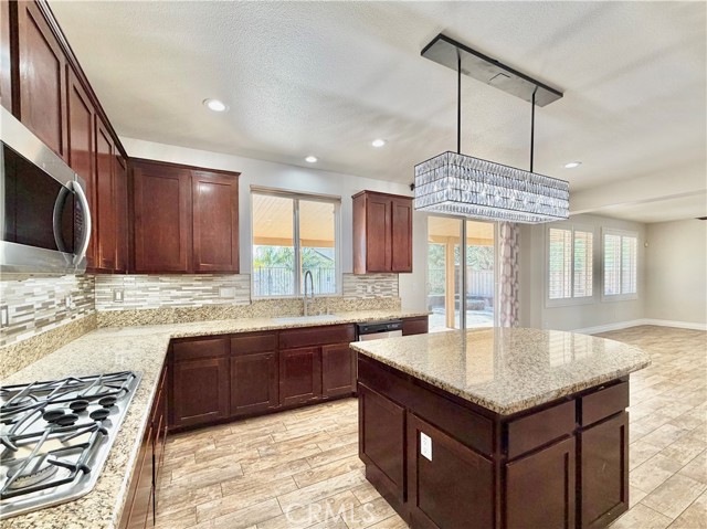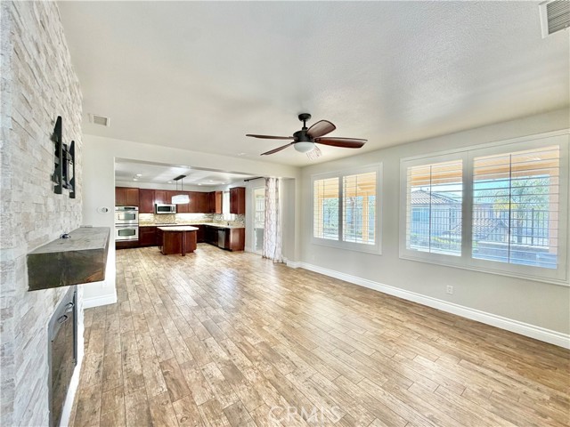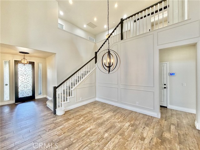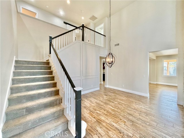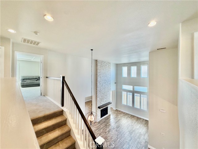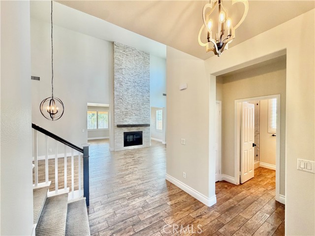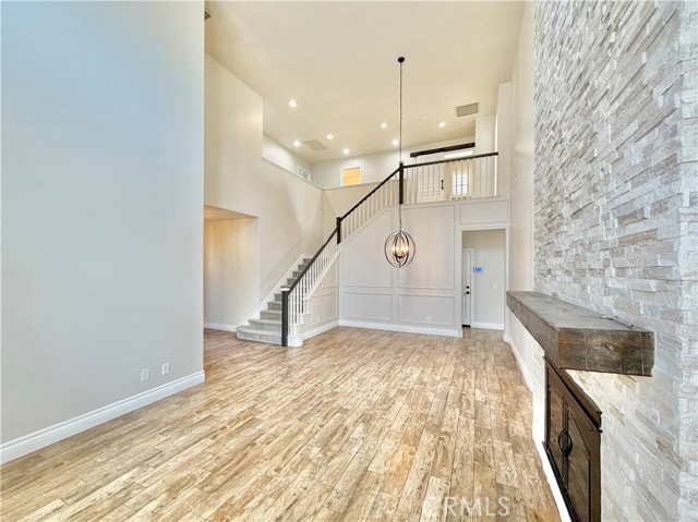 Grand and spacious 5 Bedroom 3 Full Bathroom 2-story home located in the Canyon Hills community with a 3 car tandem garage. At over 3,000 sf, this family home offers an open floor plan with soaring high ceilings, two sided custom fireplace, large kitchen with connected living room, a full bedroom and bath downstairs for a mother-in-law suite/guest quarters, 4 full bedrooms upstairs, and a large covered patio in the private rear yard. The large kitchen has island seating, walk-in pantry, dual oven, and is adjacent to the rear covered patio through the sliding rear door, idea for entertaining or family time. All bedrooms are generous in size, with the primary and an additional upstairs guest bedroom being oversized. The primary bathroom offers dual closets, dual vanities, soaker tub and separate walk-in shower. Laundry is conveniently located upstairs and includes the washer and dryer. Located walking distance from one of the 3 community parks, Canyon Hills is unique community —featuring 3 pools, an 18-acre sports park, dog parks, hiking trails, tennis courts, and highly desired middle schools. This home is now available for lease.