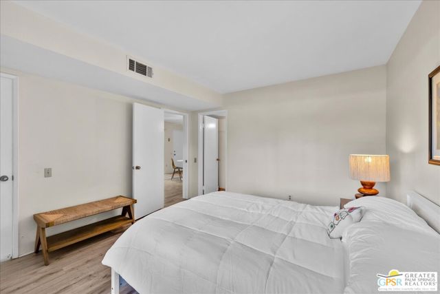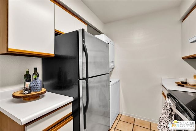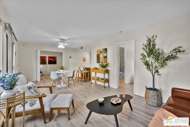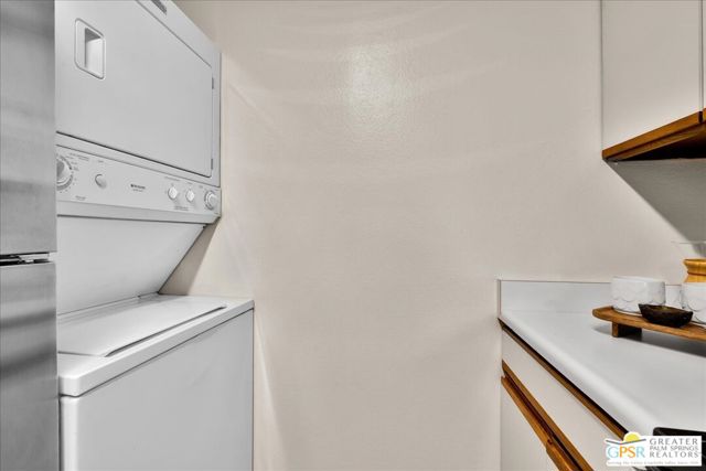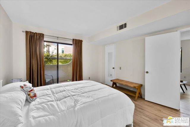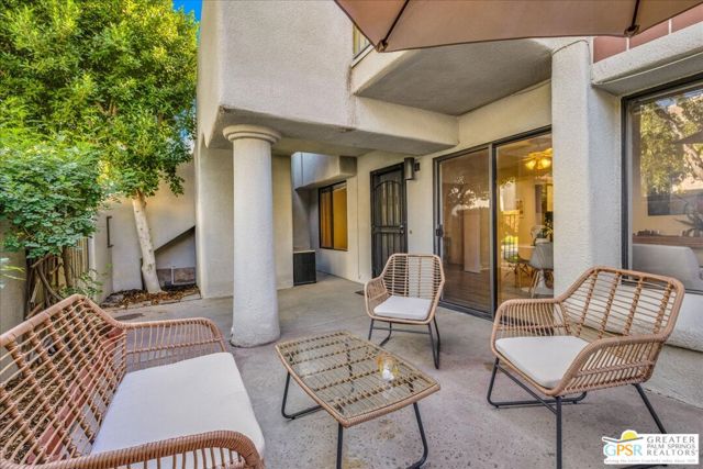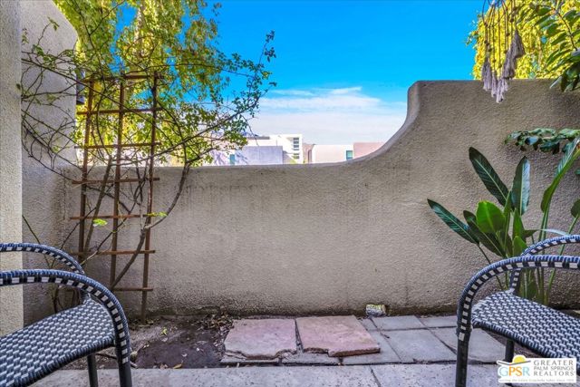Casa Verde 2BR Ground-Floor Retreat Indoor/Outdoor Desert LivingWelcome to this inviting 2-bedroom, 2-bath Casa Verde condominium, ideally situated on the ground floor with *no steps* and an expansive, fully enclosed patio that seamlessly blends indoor and outdoor livingperfect for relaxing, dining, or entertaining under the Palm Springs sky.Inside, both bedrooms feature generous walk-in closets, and the convenience of in-unit stackable laundry adds everyday ease. Luxury vinyl plank flooring runs through the main living areas, offering a modern look and easy care, while classic Saltillo tile in the kitchen and baths brings warm desert character and low-maintenance practicality. The primary bedroom enjoys its own private patio, creating a tranquil retreat for morning coffee or evening unwinding.Located just a short distance from the resort-style pool and spa, you'll enjoy stunning mountain views and a true vacation ambiance right at home. Casa Verde is a gated community in central Palm Springs, just a few blocks from downtown shops, dining, galleries, and nightlifeoffering the perfect blend of comfort, convenience, and quintessential Palm Springs living.