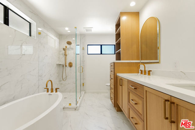 Welcome home to this thoughtfully detailed residence nestled at the end of a peaceful cul-de-sac on a large lot in the coveted Encino neighborhood of California. This home offers 3,400 sq/ft of living space on a 10,979 sf/ft lot, boasting a spacious layout featuring 5 bedrooms and 3.5 bathrooms. Each bedroom offers generous proportions and abundant closet space, ensuring comfort and functionality. Located on property is a detached guest house, with vaulted ceiling, a walk-in closet and bathroom, and its own separate entrance enjoys a serene view of the backyard through french doors - perfect as a quiet office or exercise room. Every detail has been carefully curated, from the custom cabinetry to the exquisite stone finishes adorning the kitchen and bathrooms, creating a sleek and sophisticated ambiance throughout. Enjoy an abundance of natural light streaming in through large windows, illuminating the interior and creating a warm and inviting atmosphere. The kitchen features double Viking ovens, an industrial Viking gas stovetop, and stainless steel appliances, with ample counter space.This home offers a serene oasis away from the hustle and bustle of city life. Relax in the tranquility of your surroundings, whether lounging in the privacy of the backyard or unwinding in the comfort of your stylish interiors. Renowned shopping, dining & top-rated LAUSD schools just a short distance away. Schedule a showing today and experience luxury living at its finest in Encino, CA.