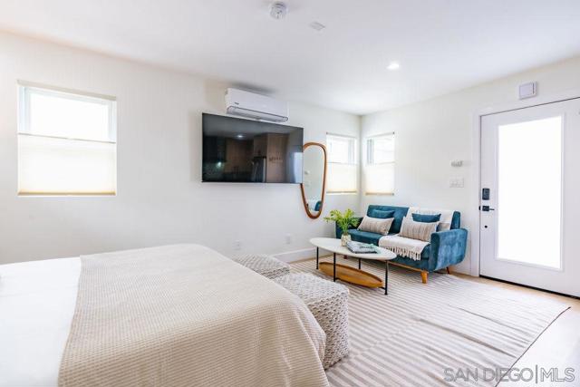MID-TERM ONLY FURNISHED RENTAL - Quaint Studio in Charming Marston Hills Step into this recently renovated studio, a hidden gem tucked away in the vibrant Marston Hills and Hillcrest district, offering a refined blend of modern sophistication and cozy charm. This thoughtfully designed retreat features sleek furnishings, curated finishes, and a tranquil atmosphere that feels worlds away from the surrounding city energy. The well-appointed kitchen includes stainless steel appliances and ample functionality for preparing simple meals inspired by San Diego’s diverse culinary scene. The inviting living space offers a comfortable sofa and flat-screen TV, creating the perfect setting for relaxing evenings or unwinding after a day exploring the city. Just beyond, the plush queen bed is dressed in luxurious linens and soft pillows, providing a restful and rejuvenating night’s sleep. The elegant bathroom features a tiled shower with clean, modern finishes, offering a spa-like escape after busy days. Additional conveniences include a mini-split air conditioning system for year-round comfort and one dedicated on-site parking space. Located near Hillcrest dining, Balboa Park, medical centers, and central San Diego attractions, this studio offers an ideal balance of urban access and peaceful living for extended stays. Rates vary by season and length of stay. Published amounts are estimates; final pricing, fees, and availability are subject to change until a signed agreement. Please inquire for an exact quote.