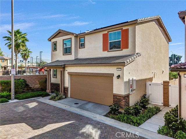 (LOW HOA Due, LOW Property Tax Approx. 1.1%, & NO Mello-Roos/CFD) Beautifully Newer Built in 2024, 3-bedroom, 2.5-bath home offering 1,684 sqft of bright & inviting living space. Located close to the community pool, and picnic area, this home combines comfort, convenience, and community. Enjoy a spacious two-bay garage with storage racks & owned solar panels for energy efficiency & also multispeed HVAC system, spray foam insulation, & high-performance air filtration. Inside, the home features fresh paint, chrome fixtures throughout, and an open floor plan ideal for modern living. The chef’s kitchen showcases a large island, countertops with a granite backsplash, plenty of cabinetry with pantry, and stainless-steel appliances including a gas range, dishwasher, and micro-hood. All bedrooms are located upstairs, including a primary suite with a walk-in closet and private walk-in closet. Bathrooms include high-efficiency toilets & dual sinks. Additional included amenities feature a refrigerator, washer, dryer, reverse-osmosis (RO) drinking system, and water softener ~ providing true move-in-ready convenience. Situated just minutes from major freeways (SR-60 and I-15), whether commuting to work, exploring the mountains, or heading to coast. (Lives like a SFR, property is zoned as the detached condo.)