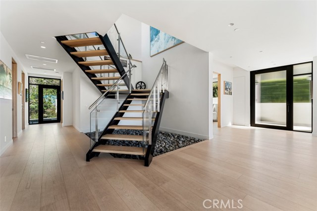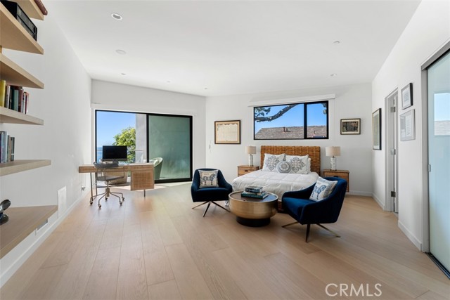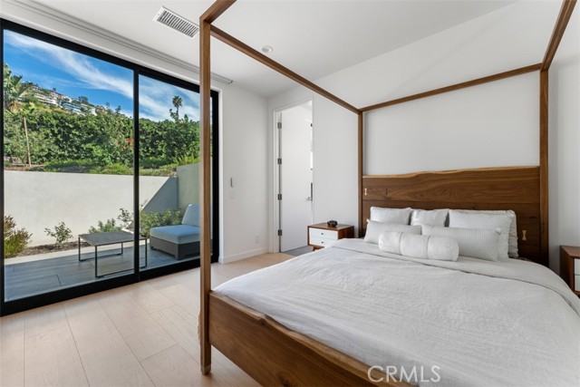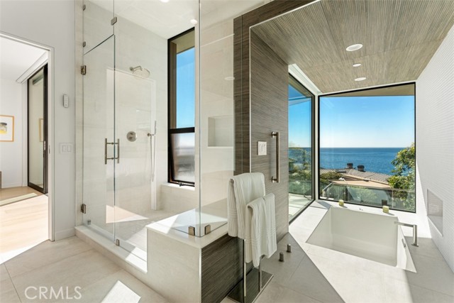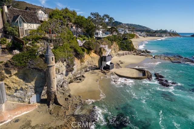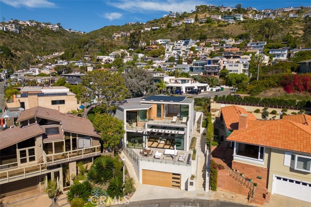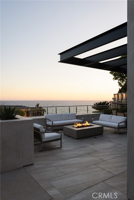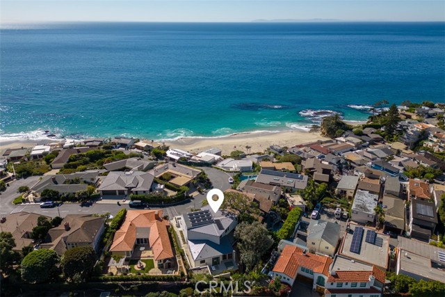 See and hear the waves from this stunning modern architectural home on the ocean side of the Pacific Coast Highway (completed in 2023), which epitomizes coastal elegance and ultimate beach living behind the secured gates of the exclusive Lagunita community in Laguna Beach. Just steps down a private road and private stairway to beautiful Victoria Beach, this 4 bed, 5 bath 3,596 SF residence is thoughtfully designed to maximize natural light and to take advantage of the breathtaking Catalina Island views and sunsets.. Neutral and warm tones used throughout this home accentuate the open floor plan where the kitchen, formal living, and dining areas all lead to an expansive front deck with seating and firepit facing the spectacular ocean views. Great for entertaining, the chef's kitchen features Taj Mahal quartzite countertops, Eggersmann (German) custom cabinetry, and state-of-the-art SubZero/Wolf appliances - including coffee maker, 48" refrigerator, six-burner 48" range, wine fridge, steam and conventional ovens. The main level also includes two guest bedrooms with ensuite baths, a back deck with spa & sauna where you can enjoy your favorite music, entry to the backyard, and an off the kitchen outdoor patio with built-in Wolf BBQ and refrigerator. Up the floating staircase are soaring architectural ceilings and windows that flood the whole home with natural light. Upstairs includes the master bedroom which offers its own private balcony with panoramic 180-degree ocean views, a spacious closet, as well as a genuinely spa-like bathroom with steam shower & soaking tub (both with ocean views) perfect for relaxing and enjoying the evening sunsets. Down the hall is a guest bedroom with an ensuite bath and its own private balcony with lovely ocean views. A laundry room completes the upstairs plan. Other home features include premium wide plank French oak flooring throughout, floor to ceiling sliding glass doors with automatic interior and exterior shades, and a Control4 smart home system that controls lighting, shades, surround sound for the 83-inch LG OLED TV, dual-zone AC/heating, doorbell/camera, and throughout the home speakers. Enjoy this minimalist contemporary art-filled home that is literally steps from world famous Victoria beach and mere minutes from Montage Resort. Come and enjoy Laguna Beach, its art galleries and panoply of restaurants and shops.