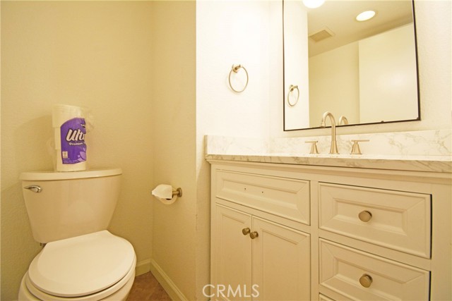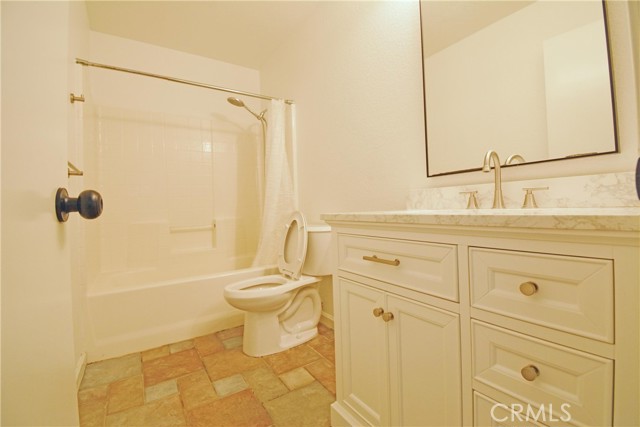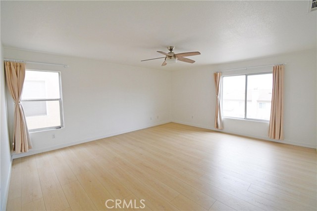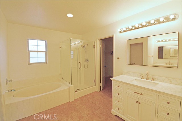 Tucked away in the quiet, gated Los Serranos Ranch community and set at the end of a cul-de-sac, this home is one of only a few in the neighborhood with this kind of privacy and location. The open floor plan greets you at the entry, with tile flooring flowing from the living room into the family room and straight into the kitchen. The kitchen offers a large island with granite counters, a full backsplash, stainless steel appliances, plenty of cabinet storage. Wood stairs lead up to four bedrooms and two bathrooms, including the master suite. The master suite features a walk-in closet and a bathroom with his and hers granite vanities, a separate tub and shower. The garage is equipped with built-in storage cabinets, epoxy flooring, and painted walls. Out back, concrete slab flooring and a wood patio are enclosed by block walls simple, low maintenance, and ready for relaxing. With protected hillsides surrounding the property and mountain views from the front, this home offers a peaceful setting you won't find just anywhere.