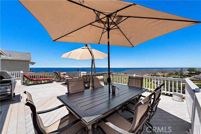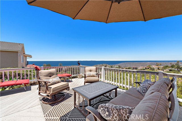 Experience the ultimate in coastal living with this stunning Top of the World home, featuring a large ocean view deck with Catalina Island and beautiful sunset views! Enjoy a spacious outdoor dining and lounging area with a BBQ, perfect for entertaining or relaxing.