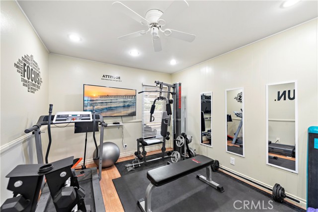 The master bedroom is spacious and features a walk-in closet and ensuite bathroom. You'll also have your own personal gym inside the home next to the bedrooms.