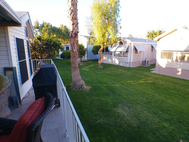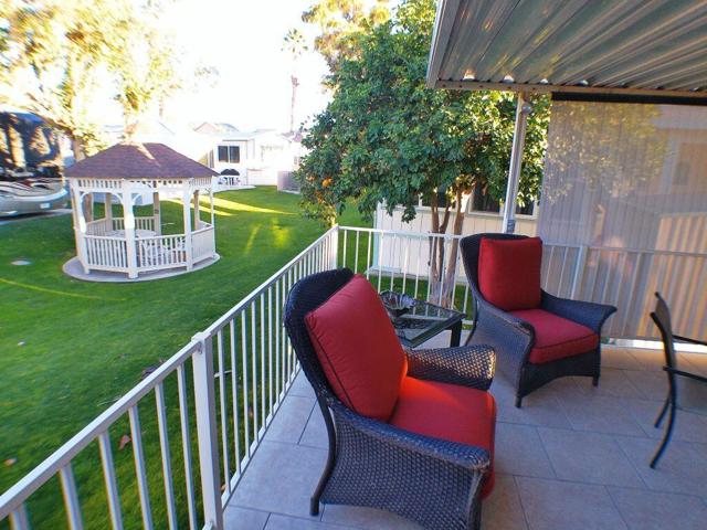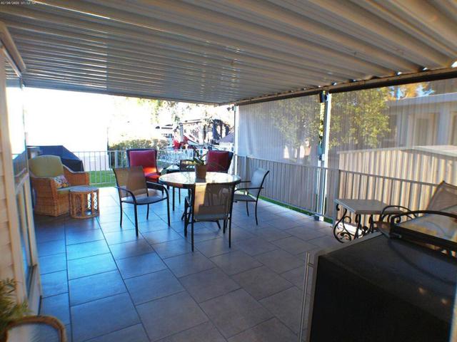This 1991 Fleetwood has been updated over the years has offers a semi-private deck with a community gazebo behind on the green belt. It has a W/d in shed, tiled deck area, TV's, Interior & exterior furniture and is Turnkey. Located very close to Club House 1.