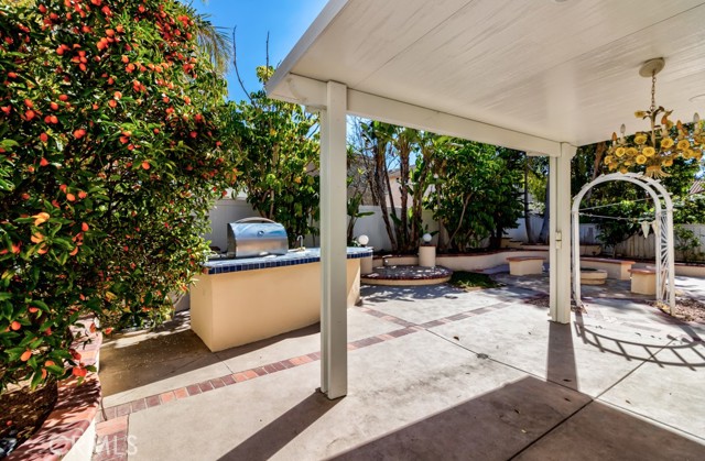 Step outside to a generously sized backyard ideal for entertaining, featuring a built-in BBQ island, fire pit, covered patio, and mature fruit trees.