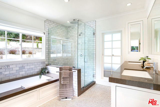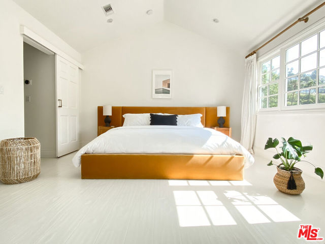 *Furnished Home Avail mid March - 3 month minimum* Minimalist Hollywood Hills Home with Tranquil Pool. Tucked away in lower Bronson Canyon Oaks, this sun-soaked hideaway features a backyard oasis framed by sweeping hillside and canyon views. A large free form pool and spa invites lounging, while hillside outdoor living flows indoors to an expertly designed and tranquil retreat, featuring three bedrooms plus a guest suite/office. Nestled among beautiful and walkable streets, yet minutes away from the heart of Hollywood, Franklin Village and Los Feliz. An expansive great room, outdoor flow from every room is the epitome of LA living. The living room's painted floors, classic crown molding juxtaposed with Scandi custom built-ins and mid-century furnishings is inviting and modern. The voluminous central space blends living, dining & kitchen in one bright, airy expense with ample windows and French doors to invite light and air. A sleek chef's kitchen sets the stage for relaxed cooking and intimate dinners, with a center island, Sub Zero fridge, two sinks and Viking range. Three well appointed bedrooms lie on the main level, including a spacious primary suite with King bed, walk in closet, spa-like ensuite bath with separate tub and shower and French doors that open to the outdoor patios, pool and spa. Downstairs, the oversized, home office/guest studio has direct access outdoors, and features a queen sofa bed. The private backyard feature a sparkling pool, spa, firepit, built-in seating, grassy yard and large patio nestled into the hillside's natural typography and encircled by your own private bluff, old growth trees and canyon views. Electric Car charger in garage. Stay longer, and make this your second home! ***NOTE*** Advertised Rate is for 7 month + lease only , no utilities included, for 3-6 month stay = $18,500 (basic utilities, no pool heating incl). Minimum 3 month, subject to availability. Security Deposit : 1 month rent + for all leases, subject to application. Must be rented Furnished ONLY. 4th bedroom is attached guesthouse set up with home office and sofa bed. Tenant Pays one time $1000 fee for Host Fee in lieu of Airbnb Fees. Pool Heating is not included. Can be included for $1700 per month additional. Enquire for Details.