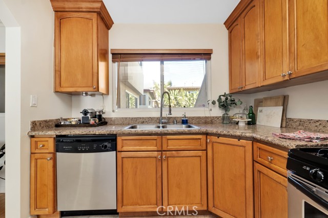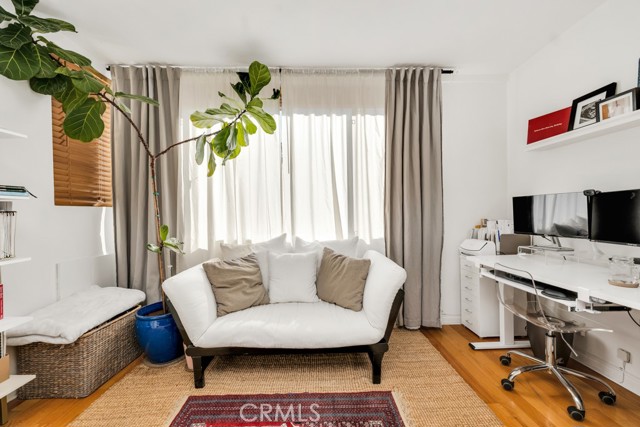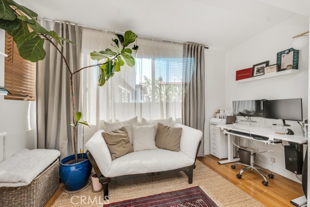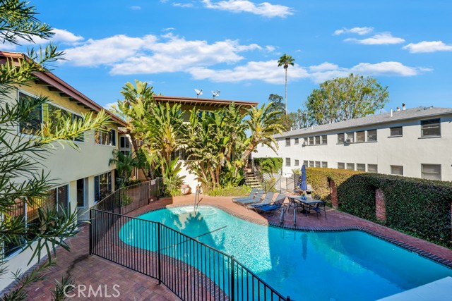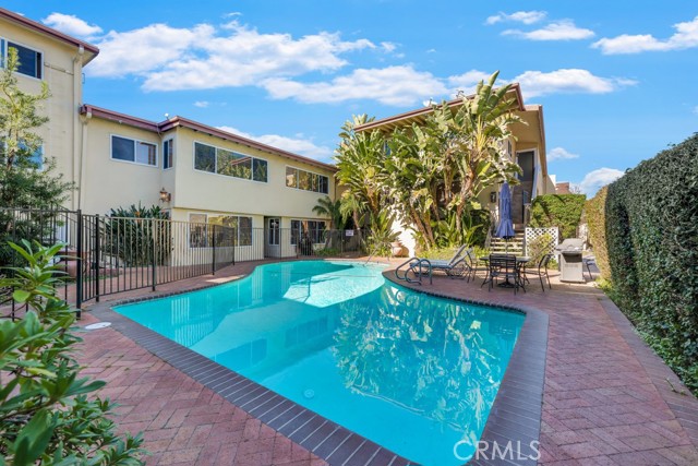 This condo-home has a gated entrance that leads to a beautiful courtyard which includes well-kept grounds, stone fountains, and a swimming pool. This second-floor unit has an open floor plan with hardwood floors, smooth ceilings, and windows that provide plenty of natural lighting. There is a spacious alcove off the living room which could be used for an office or other purpose. Charming kitchen with stainless steel appliances, wooden cabinets, and granite counters. A remodeled bathroom which also includes granite counters. The bedroom has large closet space. Don’t miss out on this condo!