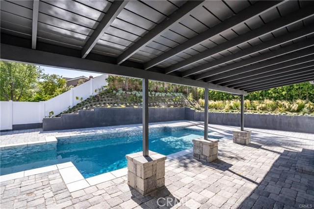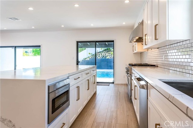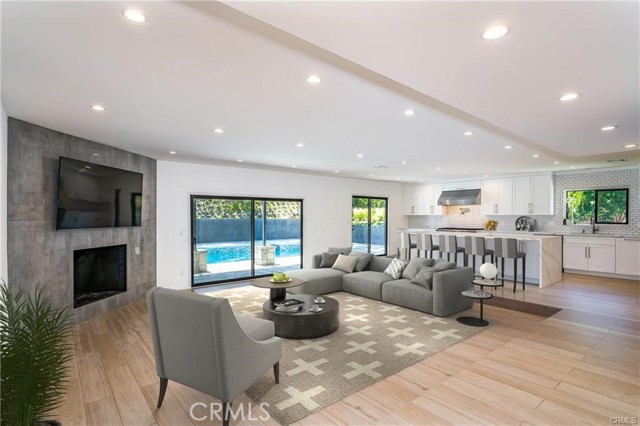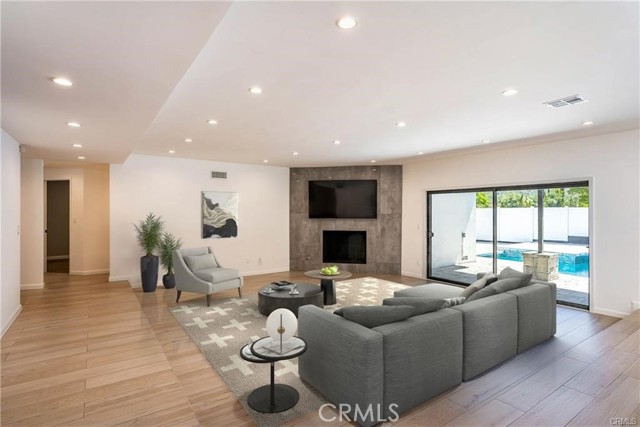 The heart of the home is a stunning "Great Room" where the chef’s kitchen—complete with stainless steel appliances, a massive center island, and an abundance of pantry storage—flows effortlessly into a light-filled family room anchored by a modern rock fireplace. Expansive glass sliders open to a resort-style backyard, showcasing sleek pavers, a shimmering Pebble Tec pool, and a dedicated dog run. With a two-zone HVAC system for personalized comfort and walking distance to all three award-winning LVUSD schools, this home offers an unparalleled blend of sophistication and location.