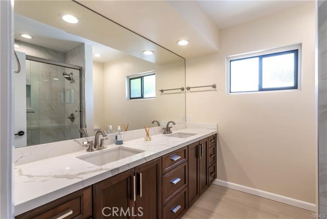 Located in the highly sought-after Mulwood community of Calabasas, this meticulously remodeled 3,100+ square foot residence defines California's indoor-outdoor lifestyle. The thoughtfully designed main level features three bedrooms, including a spacious primary suite and two secondary bedrooms. The entire upper floor is dedicated to a private sanctuary, featuring a second expansive primary suite and a versatile separate room—ideal for a professional home office or private gym.