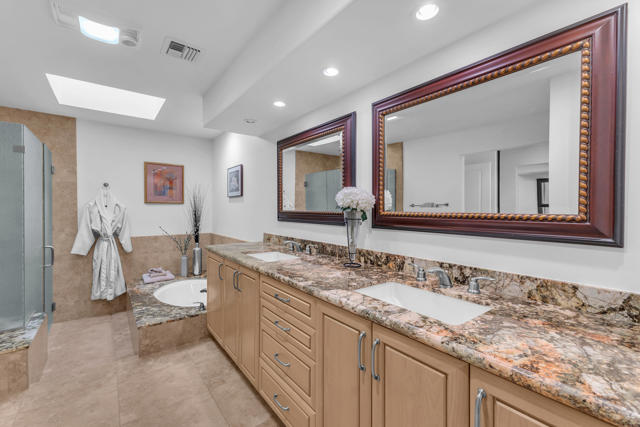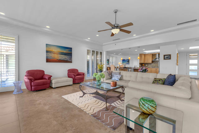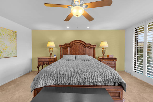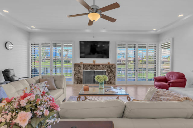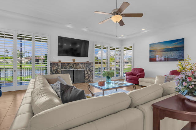 This charming lakeside home in Rancho Mirage offers stunning lake views and sweeping vistas of the San Jacinto Mountains across 2,535 sq ft of well-designed living space. The spacious primary suite features a walk-in closet and oversized bathroom with separate tub and shower. A large guest bedroom, second oversized bathroom, and a generous office provide comfort and flexibility.Additional features include a two-car garage plus separate golf cart access. Located in the heart of the guard-gated Springs Country Club, residents enjoy access to an 18-hole championship golf course, clubhouse dining, fitness center, tennis and pickleball courts, pools, spas, and an active social calendar all set within beautifully landscaped grounds.