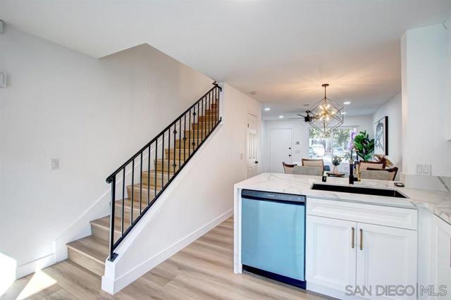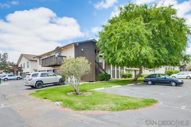 Welcome to this Charming 2-bedroom, 1-bathroom Condo in Santee! The open-concept living room is perfect for relaxing or entertaining. Updated Kitchen: Equipped with shaker style cabinets, quartz countertops and modern stainless steel appliances. Bedrooms and bath are upstairs, downstairs is a spacious living room, dining area, and the updated kitchen. Bonus: the new central air conditioner was installed just last year! The kitchen opens up onto a private, fenced patio, with a storage closet. There is a single space within a multiple-car garage, with storage, and an assigned open parking space in front of the garage. Additional open parking is just in front of the unit, and throughout the complex. For leisure and recreation, the complex features include a large open lawn adjacent to the pool area! The common laundry room is close to the unit.
