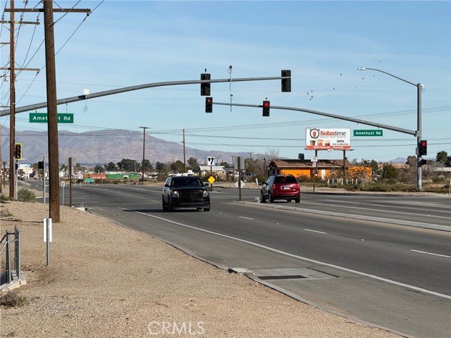 HIGHWAY FRONTAGE!! The best priced lot on Palmdale Rd / Highway18. Nice and Flat 1.04 Acre of land strategically located near the Signalized corner of Palmdale Rd and Amethyst Rd. 2 MAJOR STREET!! Heavy Traffic Counts!! All utilities including water, power, sewer are present on Palmdale Rd. This land is Zoned C-2T or General Commercial. Gorgeous mountain view from the front of the land. Only 1/4 mile east of Silverado High School and right next to Fireman Rock and Nursery. Perfectly located in between 15 Freeway and Highway-395. High traffic volume. Great location to build a Fast Food Restaurant, Gas Station, hotel, Grocery Store, Auto Dealership, Car wash, office, fast food, strip center, and etc. MOTIVATED SELLER!!