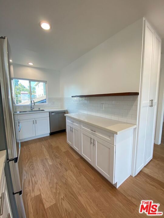 Welcome to 1129 N Westmoreland Avenue. Nestled on a quiet, tree-lined street, this beautifully updated 1950s four-unit building blends classic character with modern conveniences. Step inside to a bright, open living space featuring light hardwood flooring and a thoughtfully designed kitchen equipped with contemporary finishes and full appliances. Both spacious bedrooms offer generous closet space, while the stylish bathroom includes a sleek tub/shower combination. Each residence is equipped with in-unit front-loading washer and dryer, air conditioning, dishwasher, and secured gated parking for added convenience and comfort. Ideally located just moments from some of the neighborhood's best dining, nightlife, and local favorites, offering an easy and vibrant Los Angeles lifestyle.