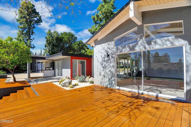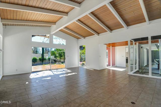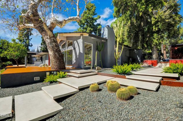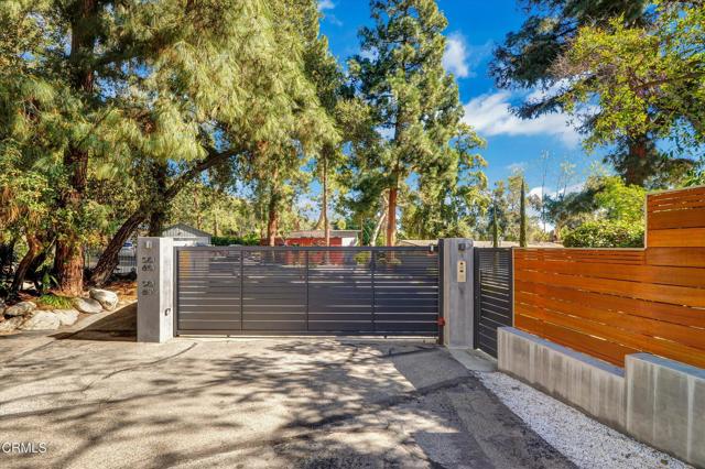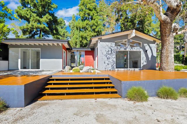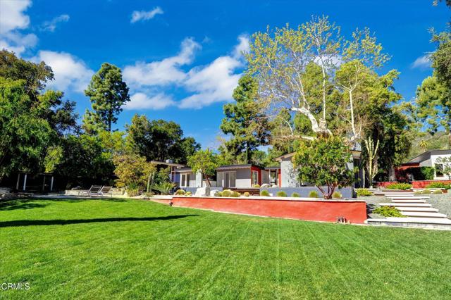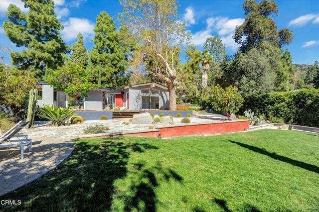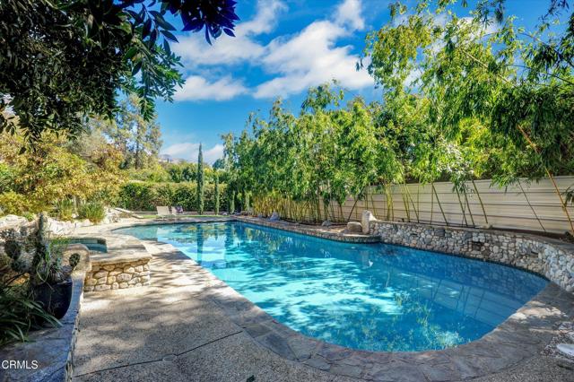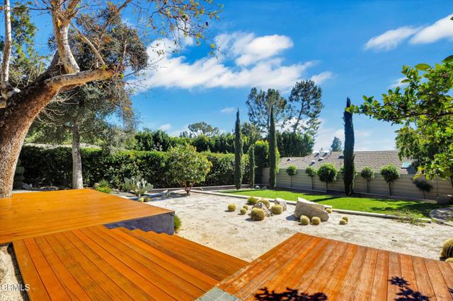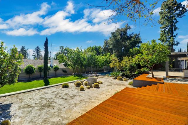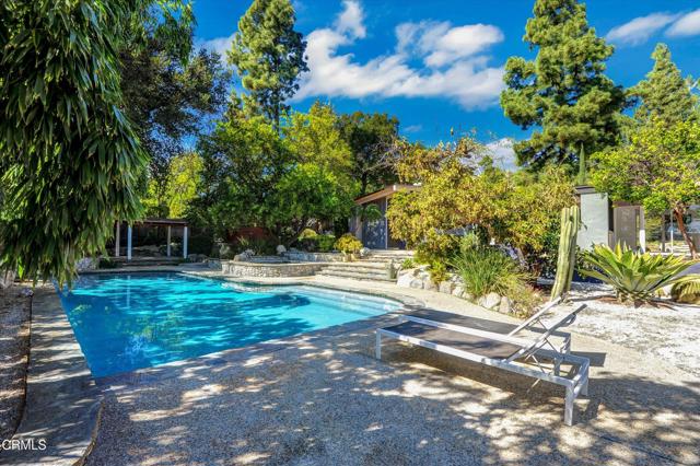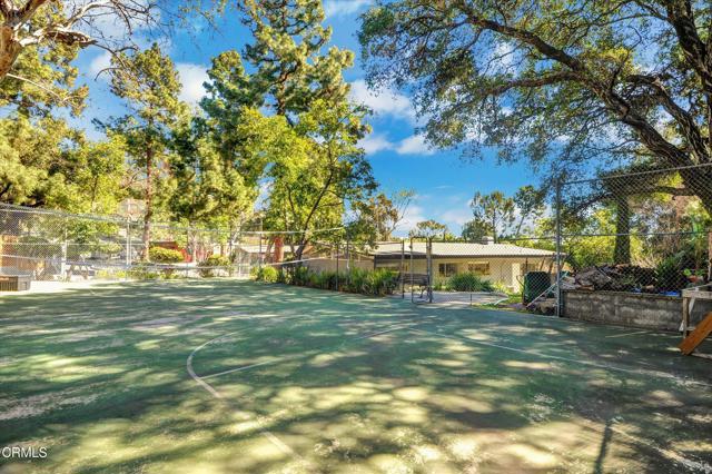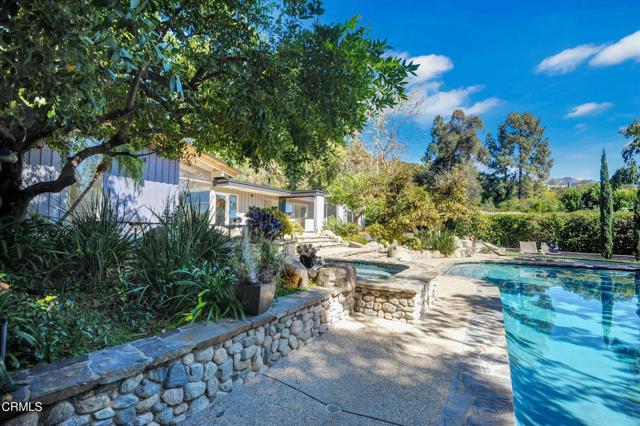 Single-Story Contemporary Estate on Nearly One Acre of Flat Land with a play court Nestled at the end of a secluded cul-de-sac on an expansive 40,080 sq. ft. tree-studded lot, this private single-story contemporary residence The spacious Living Room was beautifully remodeled and extended in 1991, creating an open and inviting atmosphere ideal for both relaxed living and entertaining. Large windows and doors seamlessly connect indoor spaces to the outdoors.The grounds are designed for true Southern California living, featuring:A gorgeous pool and spa Multiple expansive decks and patiosLush lawn areas perfect for gatherings or play. Private, serene setting at the end of a quiet cul-de-sac.