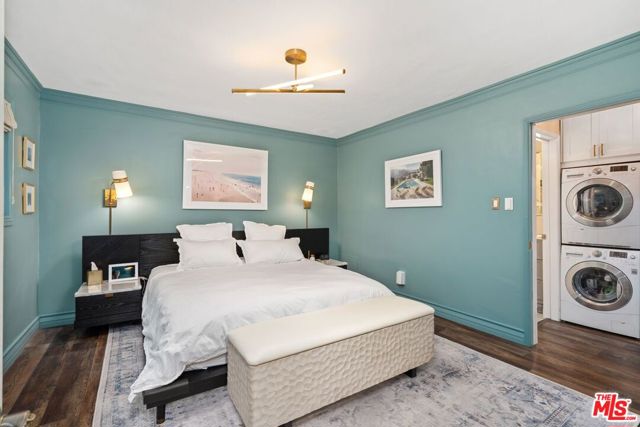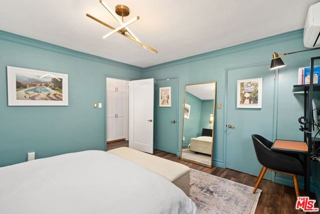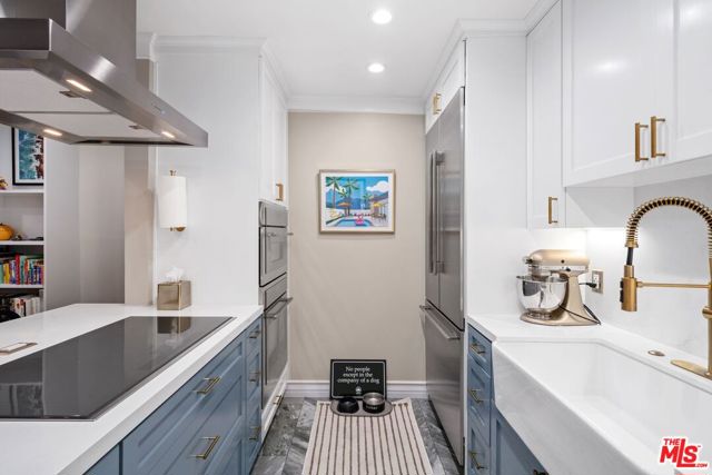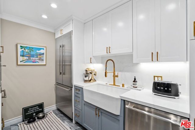 Experience the ultimate in California luxury living in this beautifully remodeled condo, just moments from the lively streets of West Hollywood. Step into a spacious living area, ideal for entertaining or relaxing after a long day. Custom built-ins frame your flat-screen TV while offering plenty of storage and display space for your books and decor. The open-concept layout flows effortlessly into a modern chef's kitchen, featuring Thermador appliances, quartz countertops, and a peninsula with seating, perfect for casual meals or hosting guests. The expansive primary suite boasts two walk-in closets with custom cabinetry and soft-close drawers, keeping your wardrobe impeccably organized. The adjacent well-appointed bathroom includes a large vanity with built-ins, a heated toilet seat, and a glass-enclosed shower and tub for ultimate relaxation. A second bedroom off the living space works beautifully as a guest room or home office. This home is enhanced with recessed lighting controllable with your phone, elegant fixtures, a built-in coffee bar with refrigerator drawer, in-unit laundry, and two mini-splits for dual-zone personalized comfort. The unit is conveniently located close to the pool, making it easy to enjoy a swim or soak up the sun. It also includes a secure underground parking space, with additional guest parking available. The complex also offers a gym and a stunning rooftop deck with panoramic views of DTLA and West Hollywood, perfect for work, relaxation, or entertaining. Situated in the Norma Triangle, mere minutes from the West Hollywood Park and the best shopping, dining, and nightlife the city has to offer, 960 Larrabee St is a modern retreat you'll love calling home!