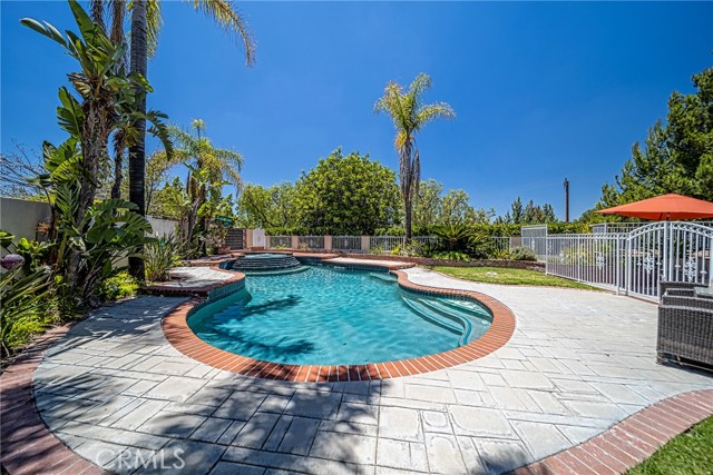 This Wonderful and Spacious 5 Bedroom, 3 Bath Home, with upgrades throughout, features a Sparkling Pool on a Huge Lot in the Prestigious Knollwood Area of Granada Hills. Tucked at the end of a Cul-de-sac, don't miss this mostly furnished beauty. The Living Room features a Fireplace, soaring ceilings, and the raised formal dining area leads to a lovely covered patio for alfresco dining that looks over the pool area. The Large Open Kitchen has a breakfast area that leads to a cozy step down family room with a second fireplace. Both the breakfast area and family room lead to the ample rear yard with grassy area, wooden deck with a view, and the beautiful, fenced pool area. This is outdoor living at it's finest. On the first floor you will also find a bedroom with an attached bath, also, there is a laundry room off of the family room that leads to the direct access, two car garage. Upstairs is a Large Master Suite with a balcony and a view and features a large walk-in closet, and private bath that include double sinks. You will find three more good sized bedrooms and a full bath upstairs. Available partially furnished or unfurnished. Don't miss this one, it will go fast.