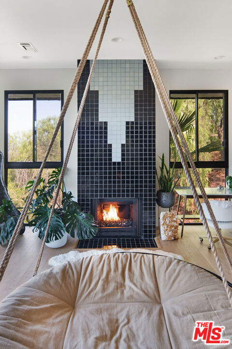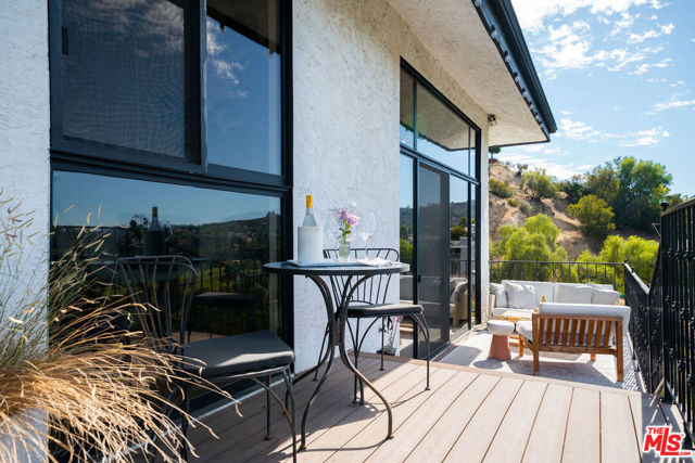 Perched high above the trees with no direct neighbors, this secluded modern home captures sweeping canyon and mountain views with sunsets that stop you in your tracks. Jaw-dropping. Cinematic. The kind of view that never gets old. Inside, an open floor plan unfolds beneath soaring ceilings and walls of glass, flooding the home with natural light from morning to dusk. A dramatic double-door entry, framed by a custom solid oak door and secondary glass entry, opens to an artful foyer finished in handcrafted Zellige tile. Smoked mirrored walls reflect the landscape beyond, amplifying light and depth throughout. The primary wing is expansive and private, complemented by two additional bedrooms and multiple living areas centered around dual fireplaces. Every finish has been thoughtfully selected. Bronze swan faucets. Designer hardware. Ambient lighting from Soho Home layered throughout. This is not a typical rental. It's curated architecture. The kitchen features newly updated appliances, including a new refrigerator, along with a whole-home Aquasana filtration system and reverse osmosis drinking water. A separate laundry area includes a new washer and dryer for added convenience. And tons of storage and walk in closets in every room. The primary bathroom feels like a private spa, complete with a soaking Jacuzzi tub overlooking the treetops. It's a space designed to unwind, reset, and take in the view in total privacy. Outdoor living is the headline. Expansive viewing decks provide front-row seating to canyon vistas and golf course greens below. Morning coffee in total quiet. Sunset dinners suspended above the trees. Absolute privacy. Solar panels with a backup battery system help reduce electricity costs while offering added reliability. A two-car garage with Tesla charger and additional driveway parking complete the functionality. Step outside your door and walk directly to the park and hiking trails. Within minutes, you're at the 101, Malibu, Casalena, grocery stores, and daily essentials. The serenity of Topanga with the convenience of the city. This is where light, privacy, and view come together. A home that feels like a retreat yet keeps you connected. Wake up above the trees. End your nights in color-soaked sunsets. Live somewhere that feels elevated in every sense of the word.