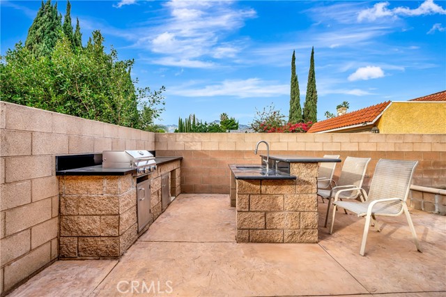 Upstairs, an open entertainment area leads to a private balcony — perfect for relaxing or hosting guests. The home offers seamless indoor-outdoor flow with patio access and a backyard featuring a dedicated BBQ/grilling area ideal for gatherings.