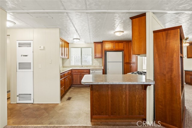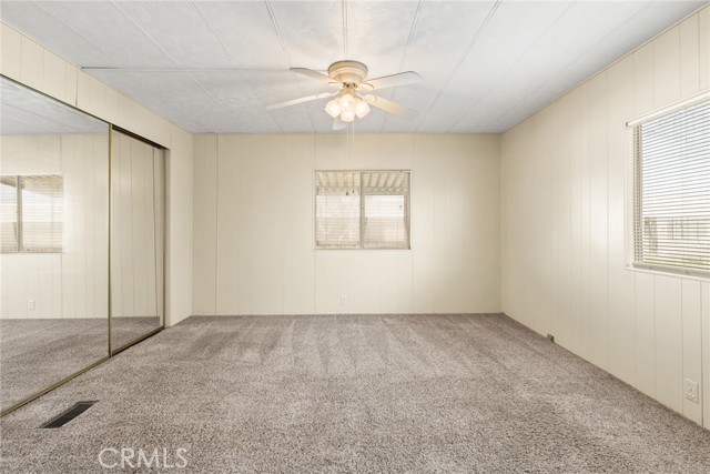 Clean unit with custom cabinets, newer appliances, new awning and widened parking area, metal shop/storage with work bench. Bathrooms upgraded with shower in the Master and tub/shower in the 2nd bath. Entertainment center included in living area. This unit is bright and clean with ceiling fans in most rooms, matching counters in kitchen and baths, window blinds, central heat and air, and low flow toilets. The long front patio faces north to enjoy cool spring days, and the pool is across the street when summer days hit, and you are looking for a place to cool off. You will find plenty of guest parking just across the street and office, social hall, mailbox and library to be involved in all the activities offered by the park. Don't miss this great affordable unit.