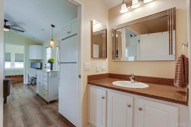 Located in Valley Oaks, all age community in the heart of Fallbrook, this charming and beautifully remodeled 1 bed, 1 bath Tiny Home offers the perfect blend of affordability, comfort, and convenience—ideal for first time buyers, downsizers, or anyone seeking a simplified lifestyle without sacrificing amenities. Built with stucco and a tile roof, this Tiny Home has the look and feel of a single-family residence. Inside, the bright and thoughtfully designed layout features new flooring, fresh interior and exterior paint, an upgraded kitchen, and a fully updated bathroom with a new shower, flooring, and added cabinetry and shelving. The open living area includes a versatile kitchen island cart with cabinets and a drop leaf for dining, creating a functional and inviting space. Situated on a desirable corner lot, the home offers an impressive outdoor setting. The large side yard includes a lawn area, covered patio, and an enclosed private oasis framed by lush, blooming Morning Glory vines. Enjoy your own lemon and grapefruit trees, perfect for gardening or relaxing with a morning coffee. Two sheds, appliances, most of the furniture, a flat screen TV are included—making this a true turnkey opportunity. Valley Oaks provides a welcoming lifestyle with amenities such as a clubhouse, exercise room, pool, and car washing station. And with its prime Fallbrook location, you’re just minutes from beaches, mountains, wineries, golf, and the charm of a small town known for its natural beauty and friendly atmosphere. A rare chance to enjoy the freedom of tiny home living—already placed in a location, already upgraded, and ready for you to move right in.