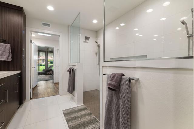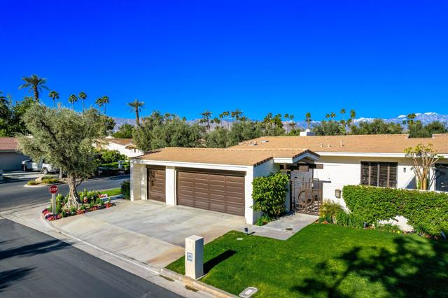 This gorgeous remodeled 3 bedroom/3 bath home sits on a quiet interior location, inside the gates of the prestigious Desert Horizons Country Club. The home has a spacious living and dining room with over 2800 sq ft of living space. The living room's electric fireplace sets the tranquil mood around two sofas and sitting chairs. The updated kitchen is sure to please with stainless steel appliances, gas range, craftsman quality cabinetry, upgraded countertops and an eating area for 4. The dining area seats 6 and has westerly views overlooking the back patio and serene greenbelt. A luxurious primary bedroom offers a large king bed, TV, and a large walk-in closet. The ensuite bathroom has upgraded cabinets, counter tops, and a large 2-person walk-in shower with a built-in bench. Guests are perfectly accommodated with private bedrooms, TV's and their own patios. The 2nd bedroom offers a queen/double bed, walk-in closet and ensuite bath. The 3rd guest room and ensuite have a queen/double bed and a desk. Amenities: Nice linens, towels, dishes, utensils, ceiling fans and wood shutters can be found throughout the home. Relax out on the back patio enjoying outdoor scenery of the green belt area of swaying palms, mature fruit trees and the community pool and spa just steps away. Desert Horizons Country Club's 40,000 sq ft newly renovated clubhouse is a central feature of the community, offering dining options, social areas, and event spaces. Optional Social Membership for tenants to enjoy gourmet meals at the club's restaurant and participate in social events. The 8,000 sq ft state-of-the-art fitness & wellness center encompasses incredible views complete with equipment for cardio and strength training, as well as group exercise classes. The NEW Sports Pavilion includes 2 tennis and 11 pickleball courts encouraging recreational and competitive play. You are close to the El Paseo Shops, Championship Golf and fabulous restaurants and dining.