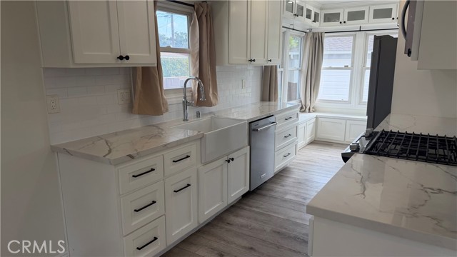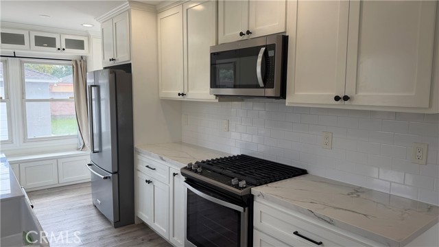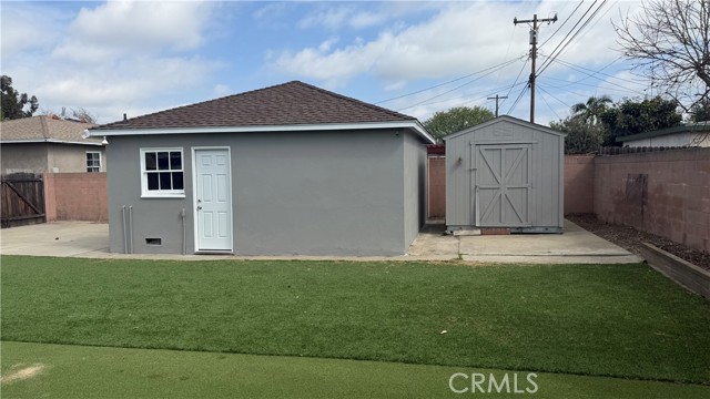 Great property located in Stratford Square. Three Bedrooms, Two Bathrooms. Interior remodeled in 2020. Exterior and Interior freshly painted. Open Floorplan, Dining Area, Remodeled and Updated Kitchen and Baths! Nook in Kitchen area with Bench Seating. Lots of Windows and Natural Light. Inside Laundry, Central A/C and Heat, Dual Paned Windows. HUGE Backyard, with Covered Patio, Turf Grass, 2 Hold Putting Green, Storage Shed and Detached Garage.