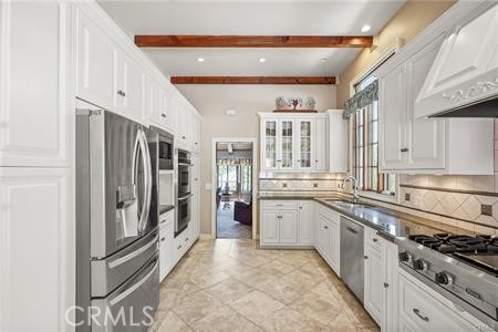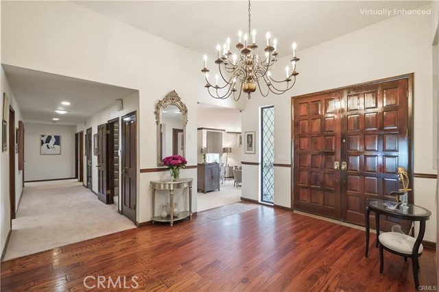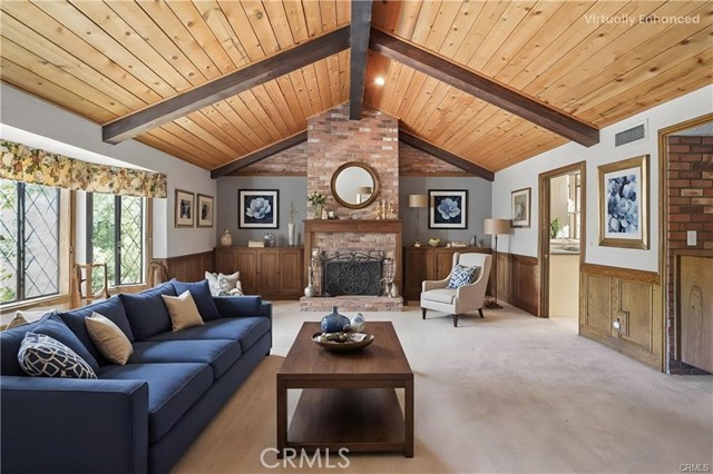A stunning 4,050 sq ft. 4 Bedroom, 5 Bath home, that sits on a large lush ½ Acre lot at the end of a quiet Cul-de-sac in the highly coveted Roy Rogers Estates. Tucked away in the foothills of Chatsworth, close to awarding winning schools, Popular restaurants, entertaining and shopping. Freeway access is also close by. This tranquil Oasis is ideal for raising families and entertaining guests alike. Open the tall beautifully stained Double doors to a large foyer entry where you will find high ceilings and beautiful wood floors that lead you into a thoughtfully laid out floor plan. There is a chef's kitchen with lots of windows and natural light that features newer top of the line appliances and eating area, perfect for family meals. The kitchen opens up to an exquisite formal dining room. There is a huge cozy family room with a wet bar, gas fireplace, vaulted wood ceilings and large Bay window to fill the room with sunlight, step down to the formal living room with French doors, balcony, gas fireplace to entertain your guests. Just across the entry is a Wood Panel Parlor room with beamed ceilings, perfect for a grand piano and sitting area. The master bedroom is oversized with French doors opening up to your private balcony. There’s good size dressing area with a cedar closet and spa style bathroom with huge built-in Soaking tub and large glass shower. Bedroom #2 opens to the backyard & hillside it features a large closet and full bath. Bedroom #3 is light and bright with large closets, double sinks and full bath. Bedroom #4 or the “Loft” has its own private staircase that leads to a larger room with wood floors, walk in closet and three quarters bath. This room is versatile and could be anything your heart desires: theater, bonus room, etc. The 5th bathroom is a guest powder room perfectly located in the hallway between the Dining Room and the wet bar. The home also has a three-car garage with ample storage area. The lush yard is peaceful & private, with mature trees, lots of plants and decking, perfect for barbecues and family entertaining. There is an in-ground spa for relaxing. This home is “one-of-a-kind” offering, country charm and classic elegance with modern appliances making it ideal for families and entertaining alike, call and make your appointment to see before it's gone