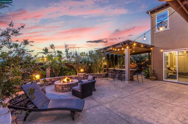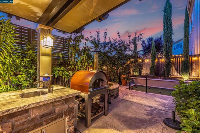 Upgraded finishes, features, attention to detail plus fabulous backyard sanctuary in Alamo Creek neighborhood, Danville’s Tassajara Valley. Celebrate indoor/outdoor living in California room w/frpl, near gas fire pit, or under custom-built pavilion w/outdoor built-in bbq, burners, sink, chiseled-edged leathered granite counter. Bocce ball court. Hot tub. Lush garden beds. 3662+/-SF. 4 bds. 4.5 bths. Main-level bdrm suite w/bkyd access. Main-level, front-facing office. Bonus/media room. Great room w/frpl, sliding wall of window to backyard patios. Chefs kitchen. Granite counters w/décor tile backsplash. Large island/breakfast br. Upgraded cabinetry, KitchenAid appliances. 550-bottle wine cellar. Polished porcelain tile & hardwood floors. 10-foot ceilings. Enhanced insulation for sound reduction. High ceilings. Custom wall paint colors. Crown molding. Recessed lighting. Primary suite w/Mt. Diablo views. En suite with dual vanities, soaking tub. Seamless glass-enclosed shower. Walk-in closet. 2-car garage. 2 EV outlets. Dual HVAC. Nest thermostats. Ring doorbell. LED lighting. Walk to community center, pool, fitness ctr, clubhouse. Near top-rated SRVUSD schls, Blackhawk Plaza, Tassajara Commons, downtown, freeways, soccer fields, equestrian centers, Livermore Valley Wine Country.