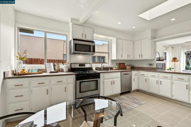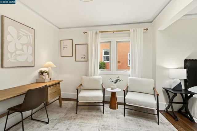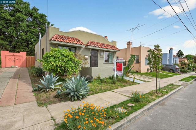 SWEET + SERENE 1928 Spanish Mediterranean bungalow with classic century old architecture + great floor plan for easy family living + entertaining. CHARMING + COZY with beautiful refinished hardwood floors, wood-burning fireplace with custom artistry mantle. Delightful eat-in kitchen with granite counters, stainless steel appliances, gas stove + convenient spacious laundry/mud room with newer washer + dryer. Large primary bedroom with 2 closets and skylight along with 2 more in the kitchen and bathroom supplying ambiant natural light throughout this wonderful home. Sunny + private garden oasis backyard with a spacious garage for storage or very usable office space, kids playroom, home gym, yoga or art studio! PLUS there's a HOT TUB! Driveway area inside of secured fence provides great outdoor space for kids or pets. Truly move-in ready, recently refreshed hardwood floors, new paint, well-maintained with "GOOD BONES", sewer and sidewalk certifications! Located in a friendly neighborhood close to wonderful shops + restaurants in the vibrant Dimond, Laurel and Fruitvale neighborhoods. Easy commute options via 580, 880, AC buses + BART. Pride of ownership awaits the next lucky owners! Welcome HOME, SWEET HOME!!! Ask about a rare + available LOW-RATE ASSUMABLE LOAN!