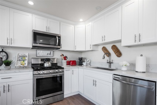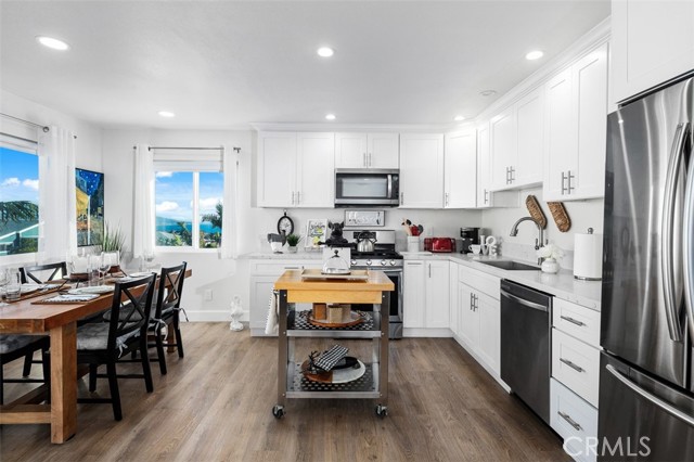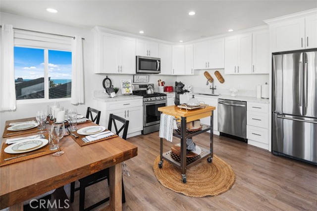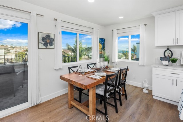 Are you ready to live in luxury? This is the quintessential Southern California rental property that you have been looking for! With absolutely stunning white water views throughout the single-level home, you are bound to fall in love with it from the moment you walk inside. The interior of this property boasts a relaxing beach vibe with the crystal clear blue of the ocean water filling the interior through the windows looking out to the horizon. You will not only love the views, but you will also enjoy living in this stunningly renovated property. The open floorplan great room allows the living room to open directly to the kitchen and dining area. The beautiful kitchen features white cabinetry, which matches perfectly with the stainless steel refrigerator, gas range, oven, microwave, dishwasher, and sink. Matching cabinet handles, quartz countertops, and light-grain laminate flooring finish off the gorgeous open space. Recessed lighting, arched door openings, and laminate flooring follow you throughout the rest of the property, which is comprised of 2 large bedrooms and 2 beautiful bathrooms. Both renovated bathrooms, one being an en-suite in the primary bedroom and the other being a hallway bathroom, feature walk-in showers with floor-to-ceiling porcelain tiles, stone pebble flooring, frameless glass barn doors, stainless steel accents, and beautiful white vanities. The large balcony just off the dining area is bound to be the place you spend most nights with its beautiful brick accents, open space for multiple chairs and tables, and absolutely stunning views of the ocean and clear skies beyond. The property includes a 1-car garage with 4’x8’ overhead steel storage rack and a common indoor laundry room. With close proximity to the highly popular Lantern District, Dana Point Habor, Doheny Beach, and multiple five-star hotels, you truly cannot be in a better location. Whether you prefer the ease of an exquisitely fully furnished home or the blank canvas of an unfurnished space, this property allows you to move in and begin your luxurious Southern California dream!