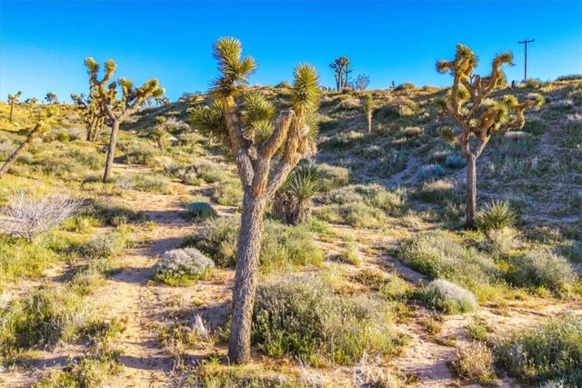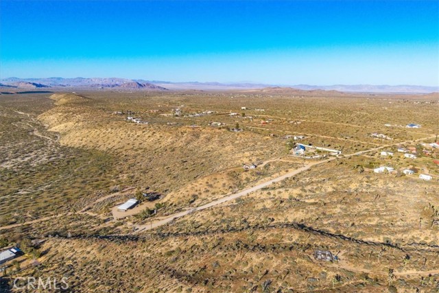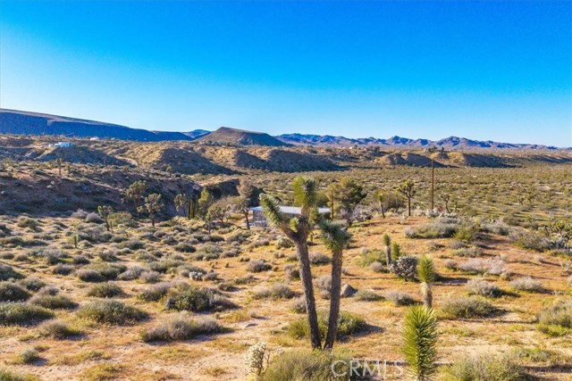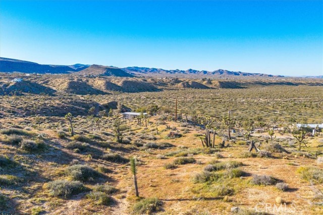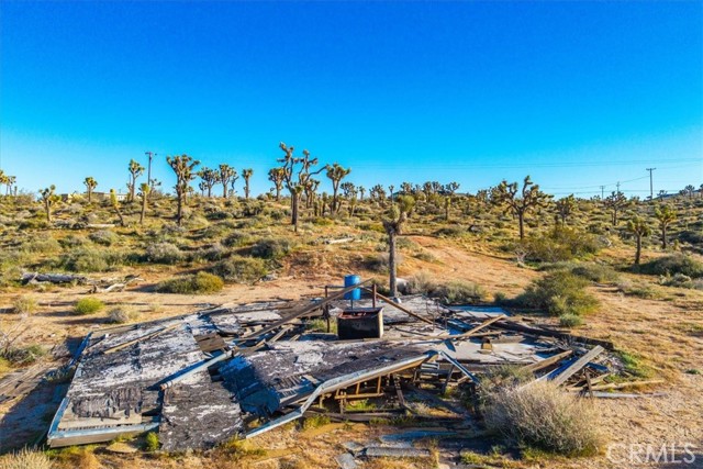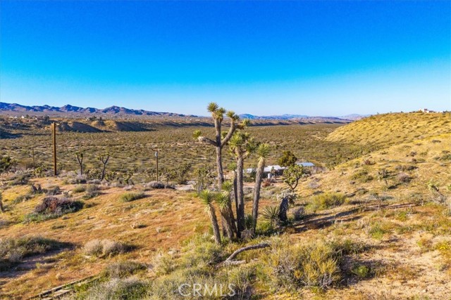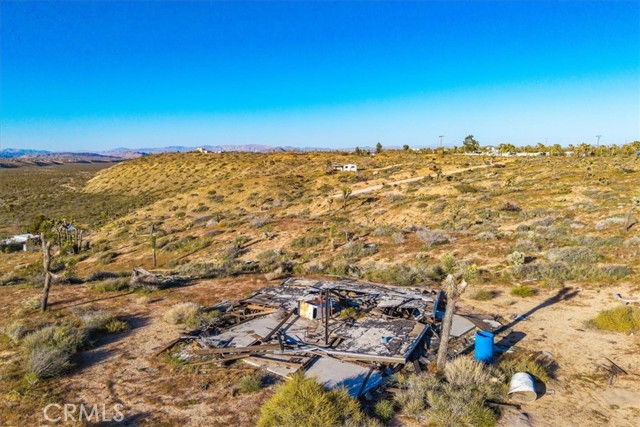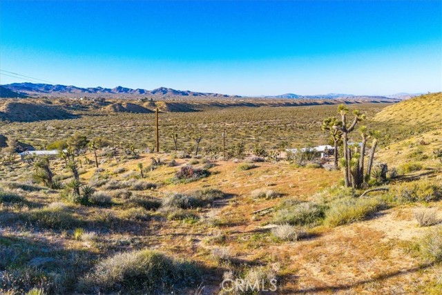 A concrete pad remains from the approximately 500 square foot cabin that once stood on the property, offering a potential starting point for future possibilities. Power is located next to the property and Hi-Desert Water District has indicated water availability (buyer to verify all utilities and building requirements).